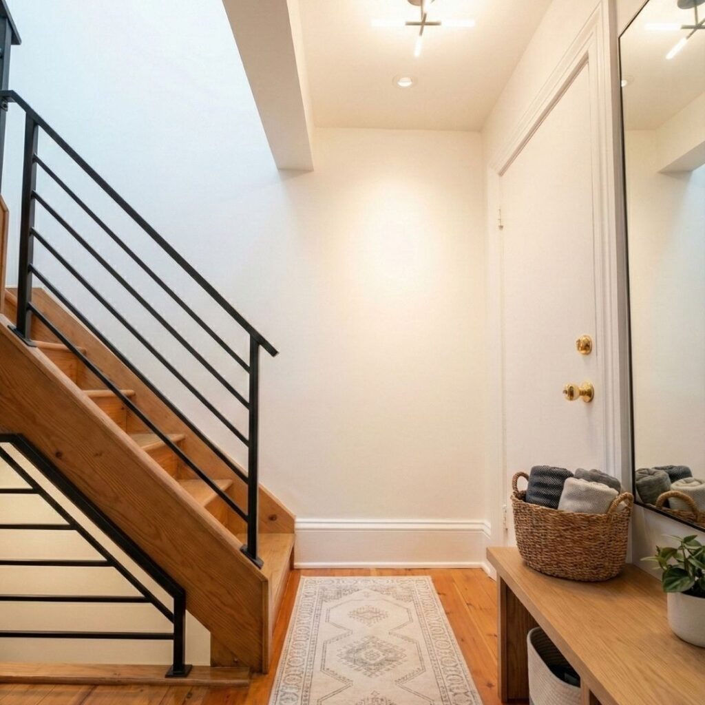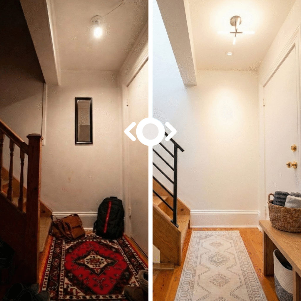 Cette transformation démontre qu’une entrée n’a pas besoin d’être grande pour être fonctionnelle et magnifique — elle doit simplement être pensée intelligemment.